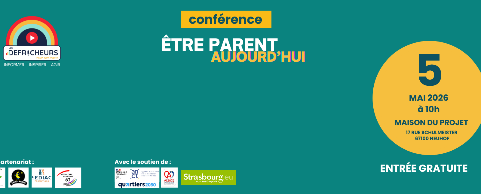 Dans le cadre du 10ème anniversaire du Mois de l’Europe 2024, le média positif « Les Défricheurs » organisent la première fête de l’Europe dans le quartier de Neuhof, le 9/05 Journée de l’Europe. E,n partenariat avec des acteurs locaux, le Centre socio-culturel Ziegelwasser, l’AMSED (MIDE), l’ACMN et le Réseau Express Jeuness. Une après-midi festive et conviviale […]